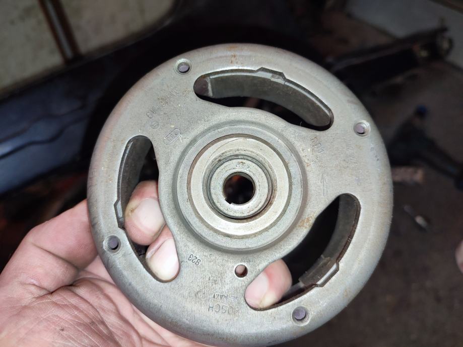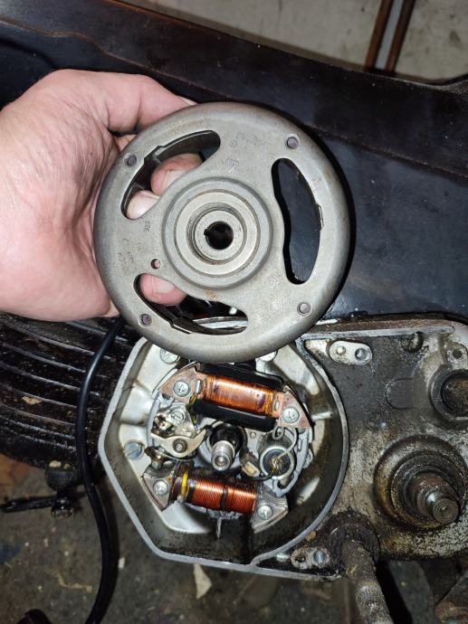 Sve je Bosh i sve je kao novo Original od Tomos sl . Magnet je 19 / 5 wata i jače je magnetizam od običnog 6 v magneta. Daje jače magnetsko polje za punjenje bobine i namotaja. Dublji je od običnog 6 v magneta radi dodatne zavojnice za štop svijetlo. Konstrukcija je takva da ne mogu popucati magnetići što je često kod iskrinih magneta. Kotve zavojnica su dodatno produžene dodanim limovima za bolje punjenje zavojnica, veća je površina jezgra zavojnica. To Bosh paljenje je bolje i jednostavnije od iskrinog paljenja s dodatnom zavojnicom koje ima bobinu s dvije žice koja se jedna spaja na dodatnu zavojnicu a druga na kondenzator i jedna dioda je na kondenzatoru. Imam i takvo paljenje.