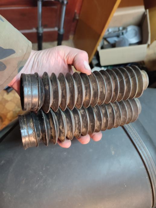 Atx vilice promijenio sam ulje i semeringe, potpuno ravne vilice, krom u radnom dijelu štapova odličan 200 eura , marzocchi gumice na njima , čizme su stariji tip atx i duže su i marzocchi gumice idu na njih, na novije kraće čizme kakve su na drugim vilicama te gumice se ne mogu staviti
