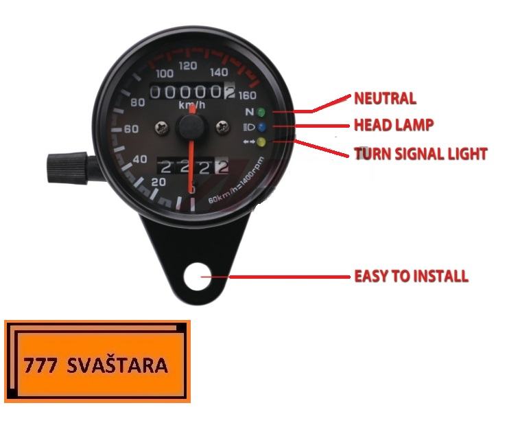 Univerzalni brzinomjer za motor -Kilometar Sat - Led Svjetlo- 12V-m4