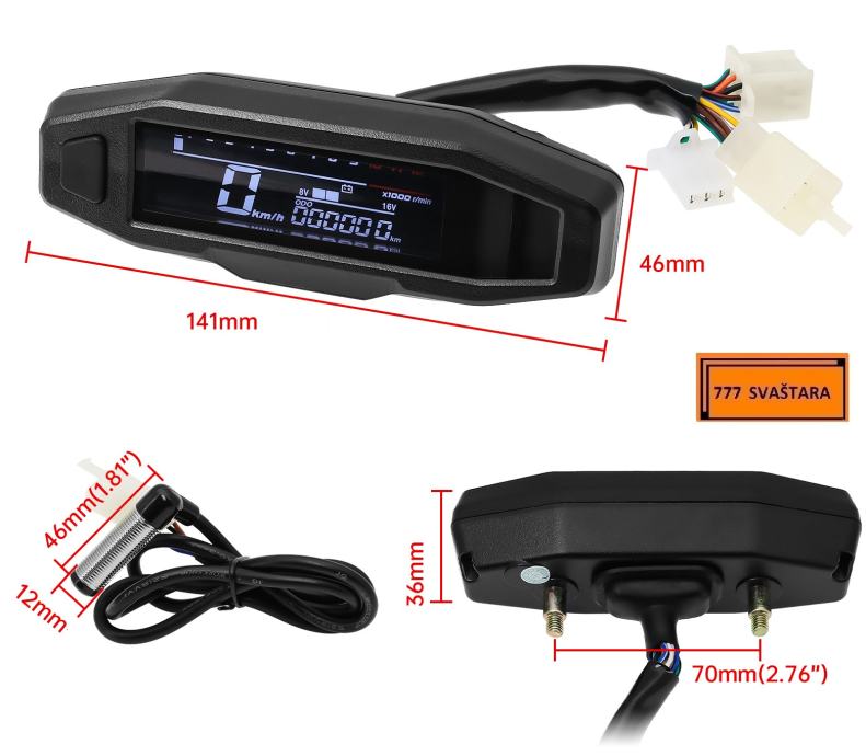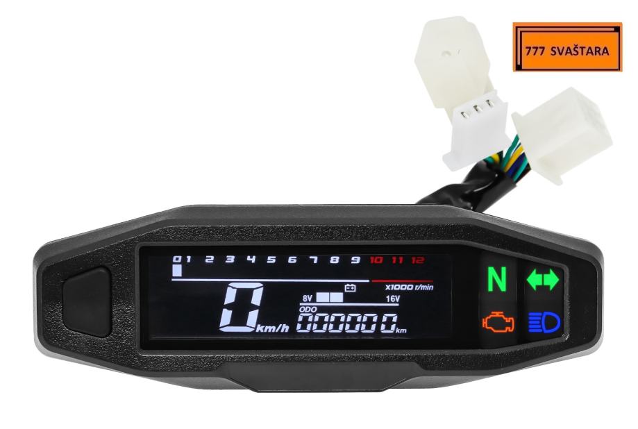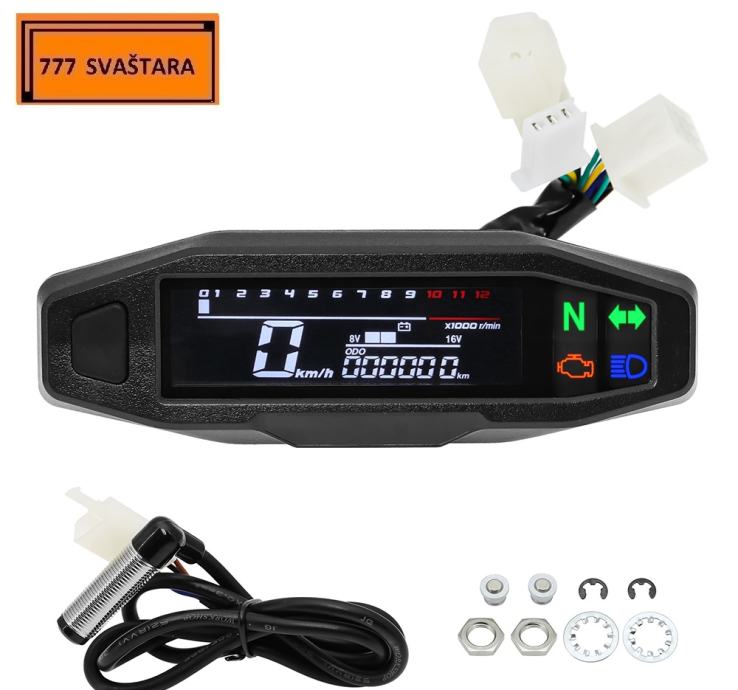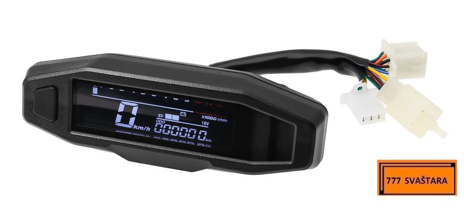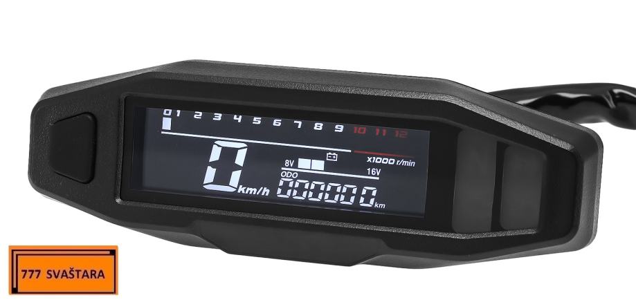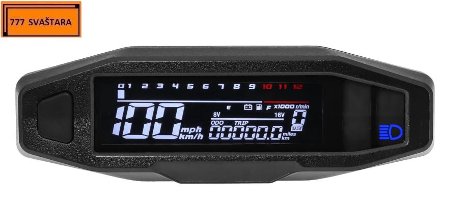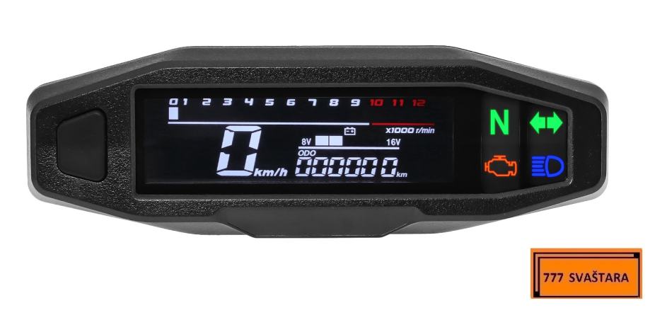 - Funkcija uključuje: brzinomjer, odometar, broj okretaja u minuti, mjerač goriva, LCD zaslon je vrlo jasan, kut gledanja je velik i mekog izgleda, ublažava umor očiju.