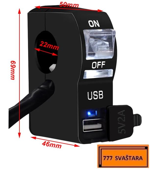 Značajke: USB priključak, s prekidačem, LED indikator, nosač za motocikl, jednostavan za instalaciju
