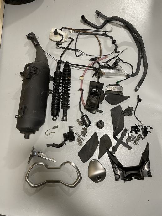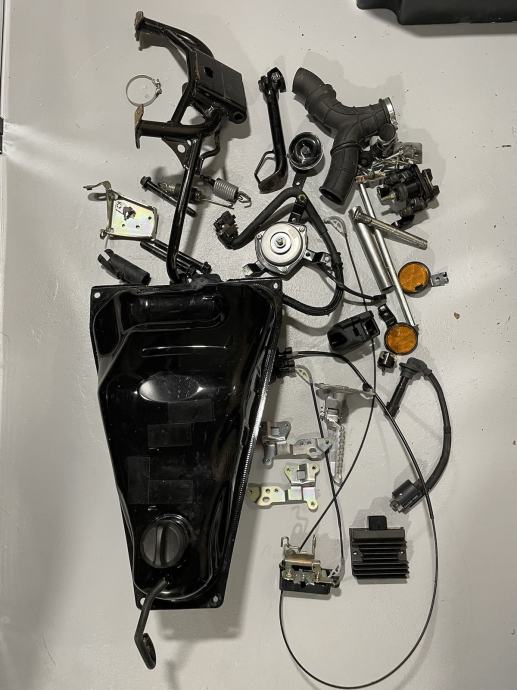 Felga ABS rezervoar kočiona kliješta regler centralna i bočna nogara bobina oslonci za noge suvozača ventilator uteg volana katadiopter usis plastike stražnji disk ispušna grana lambda sonda injection ubrizgavanje karburator ožičenje kablovi auspuh amortizeri eksoanziona posuda žigavac termostat senzor filter poklopac brava tepisi okvir sata cijev rashladne tekućine sajla kočiono crijevo ručkica pumpa kočnice prekidač ručka