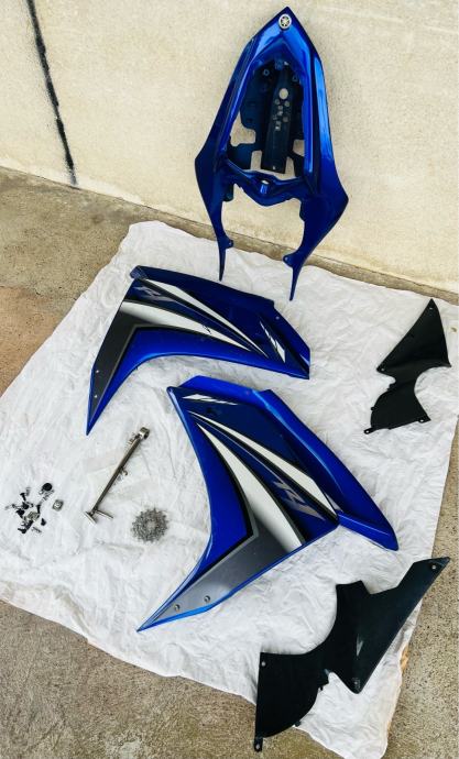 KOMPLET set R1 • BOČNI oklop AGREGATA / ZADNJI REP / ZAŠTITA plastika HLADNJAKA / NOGAR sbk INOX racing CRAFT