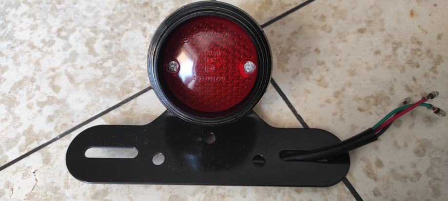 - prodajem zadnju LED lampu okruglu (retro , stop svijetlo) "CLASIC" sa nosačem tablice 2 modela (model 1 slike 9-13 / model 2 slike 13-15 ) za motor/motocikl homologiranu (E11) novu ( 45€ ) !!! Duljina priključnog kabla je 35 cm. Slike 9 - 15!