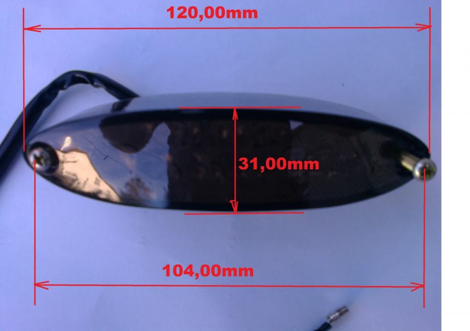 - prodajem zadnju LED lampu okruglu (retro , stop svijetlo) "CLASIC" sa nosačem tablice 2 modela (model 1 slike 9-13 / model 2 slike 13-15 ) za motor/motocikl bez homologacije novu ( 29€ ) !!! Duljina priključnog kabla je 35 cm. Slike 9 - 15!