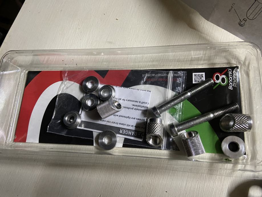 Bonamici racing original, nikakve kineske kopije u savrsenom stanju, bez ostecenja,izuzetno lagane, izradene od kovanog aluminija, pase na sve motocikle,placene 320€, prodajem iskljucivo u kompletu…lijeva i desna