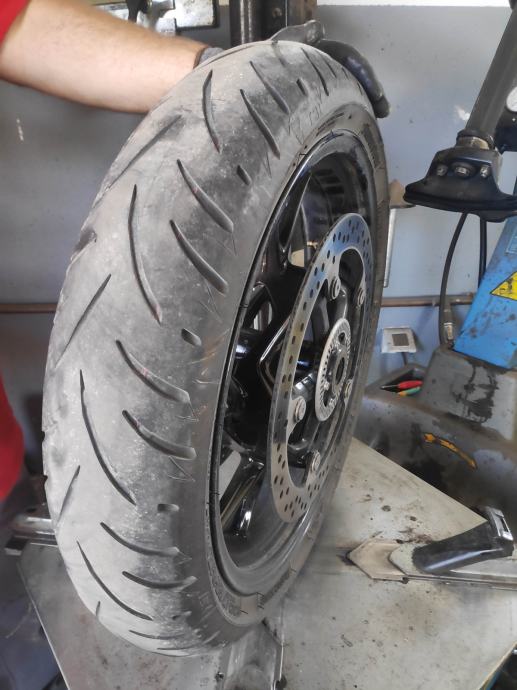 Prodaje se guma za motor Bridgestone Battlax T31 u dimenziji 120/70/17 sa 80 % profila. Gume je bile na BMW u S 1000 XR . Dot na gumi je 2020, a guma je montirana 2021 na ljeto i prosla oko 2000 km lagane vožnje . Vrlo mekana, nikad probusena i bez ostecenja