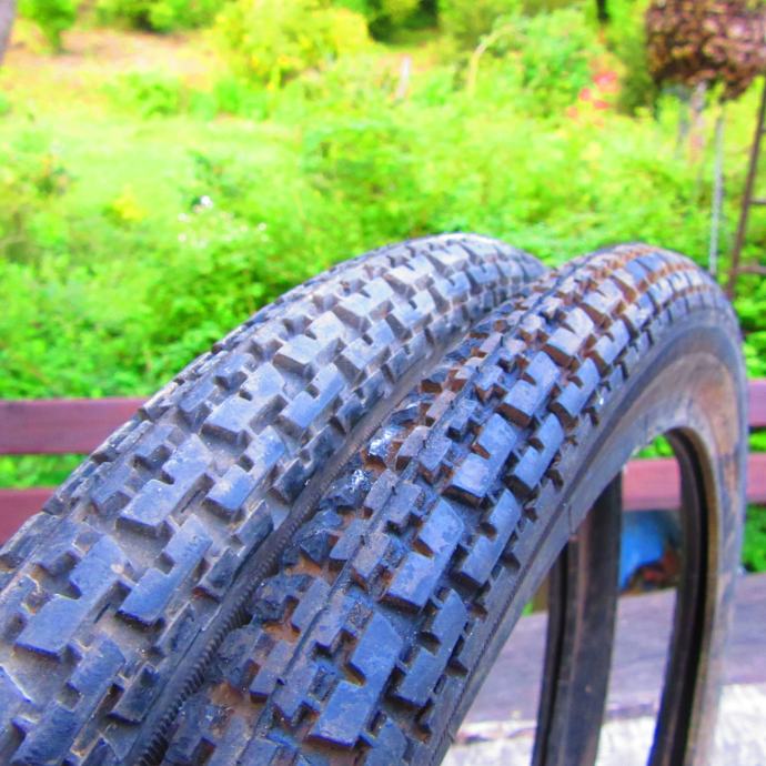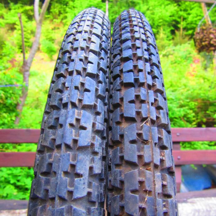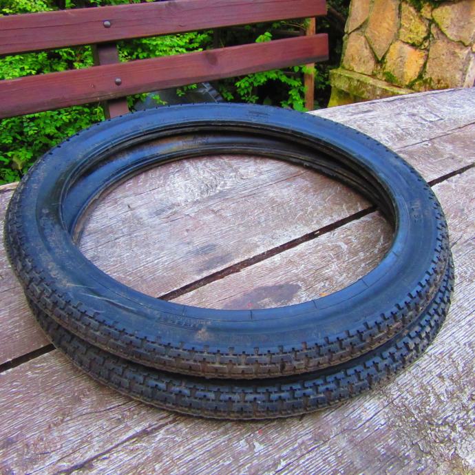 Starije gume, još nikada nisu bile montirane, za Tomos automatic ili Puch pony express, 16 cola. Cjena po komadu 10 eura.