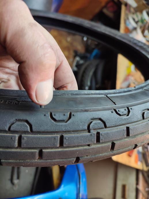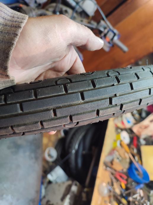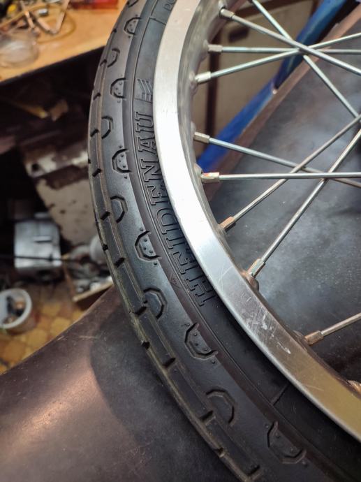 Heidenau guma za Tomos za trke skinuta s motora koji je osvajao prva mjesta na prvenstvu Hrvatske i amaterskoj moto ligi