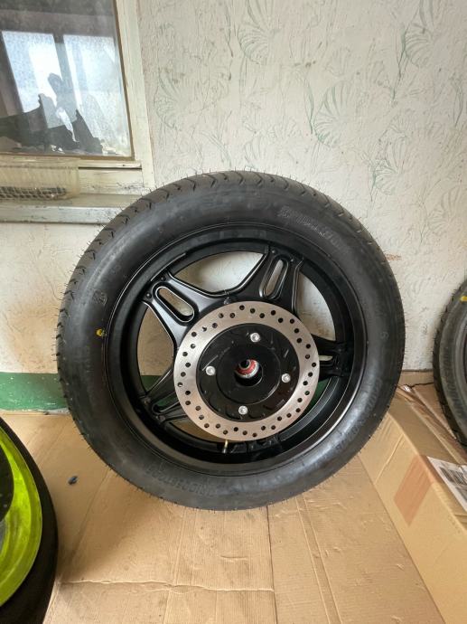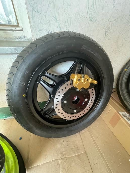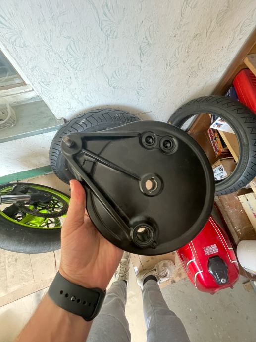 Pjeskarena i plastificirana u mat crno. Dolazi sa original bubanj kocnicom. Jedna nova kocnica te kitom za konverziju na disk. Prodajem jer idem na druge felge nije fixno