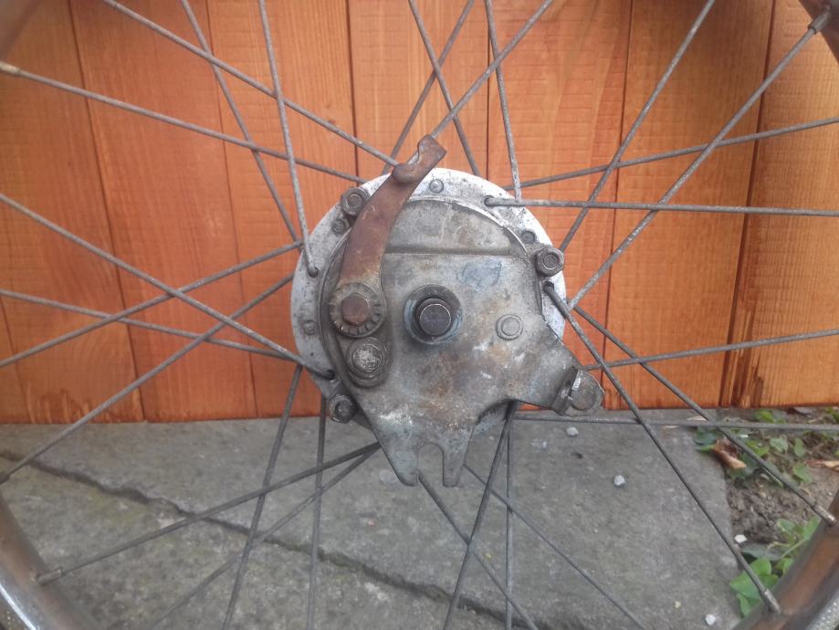 Ispravne oldtimer žbicane felge sa dobošima i paknama, sa zubčanikom i pužom brzinomjera. Made in france.