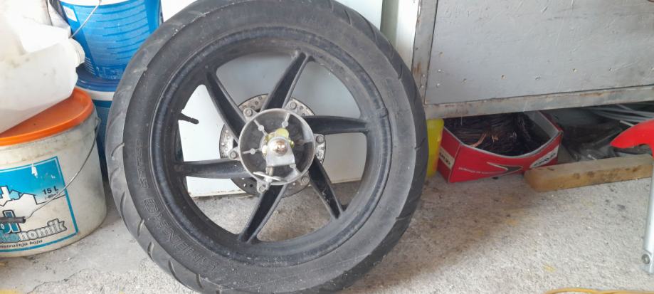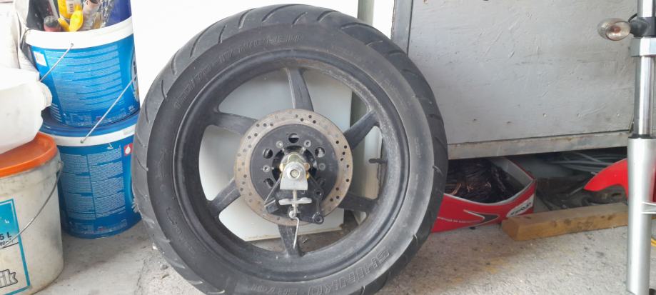 Zadnji kotač od hyosunga odgovara za više gt i gtr modela, ravan nije udaran, sa diskom i osovinom, nosačem kliješta kočnice, vidi slike. guma kao nova ali stara. sa vijcima za lančanik ali bez lančanika, za dodatnih 10 eura stavljam lančanik za 250 gt