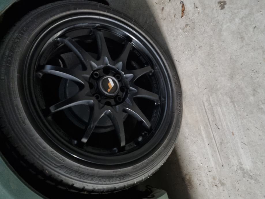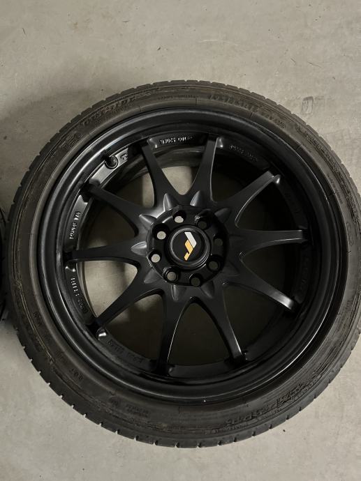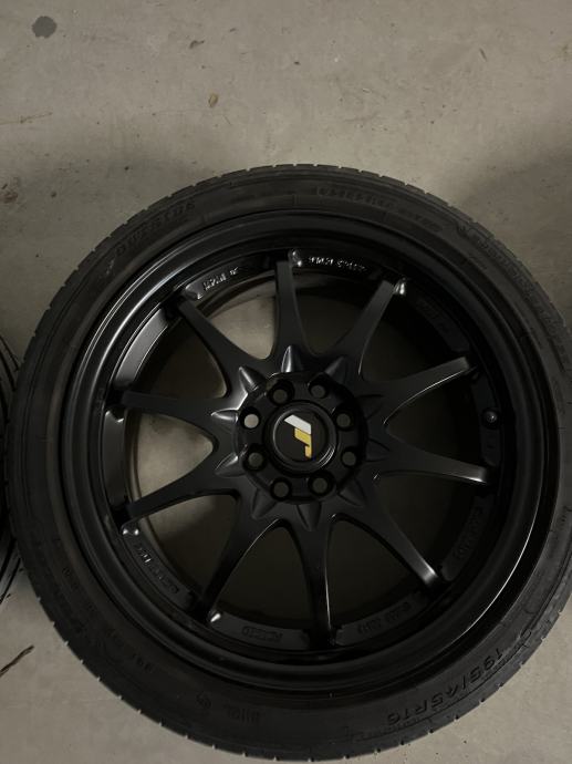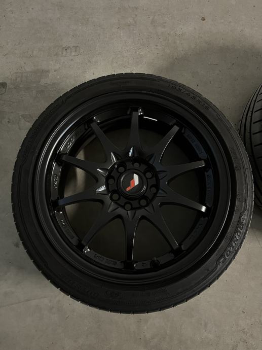 Prodajem Japan racing jr5 crne alu felge. Nisu spigane, ogrebane niti farbane. Uz njih idu i ljetne gume dot 2020 godina. Gume su DUNLOP 195/45 R 16 84V SPORT BLURESPONSE XL MFS, gume imaju još puno života u sebi.