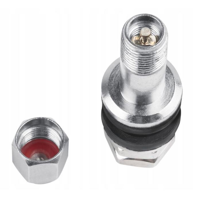 kromirani ventili kotača ukusan su dodatak obruču svakog motocikladugačka kromirana kapica u potpunosti prekriva dio ventila vidljiv izvana, zbog čega cijela stvar izgleda vrlo elegantnokromirani ventili su cjelovit proizvod - pored ventila nalazi se i kapica s dodatnom brtvomventil je pričvršćen vijcima i dodatno zabrtvljen plastičnom podloškomTehnički podaci: duljina: 43 mmveličina otvora: 11,3 mmširina: 14 mmprimjena: kotači motocikla]]>