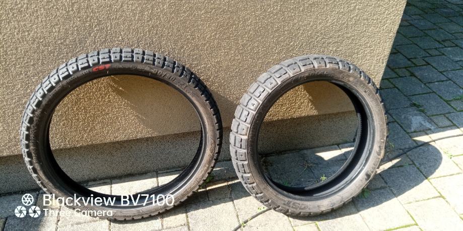 Prodajem gume 90/90-21 140/70-18 prošle 700 km. Gume su originalna ugradnja sa CF MOTo 450 MT. Gume su dobre za cestu i na makadamu a nešto lošije na težim off-road terenima.