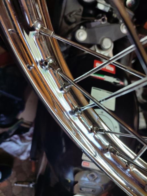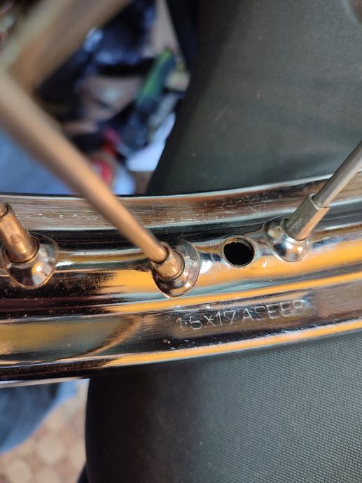Kotači obnovljeni centrirani u nulu oba imaju original obruče od Tomosa, jedan ima 4 mm žbice i to će vječno ostati ravno, drugi ima 3.5 mm žbice