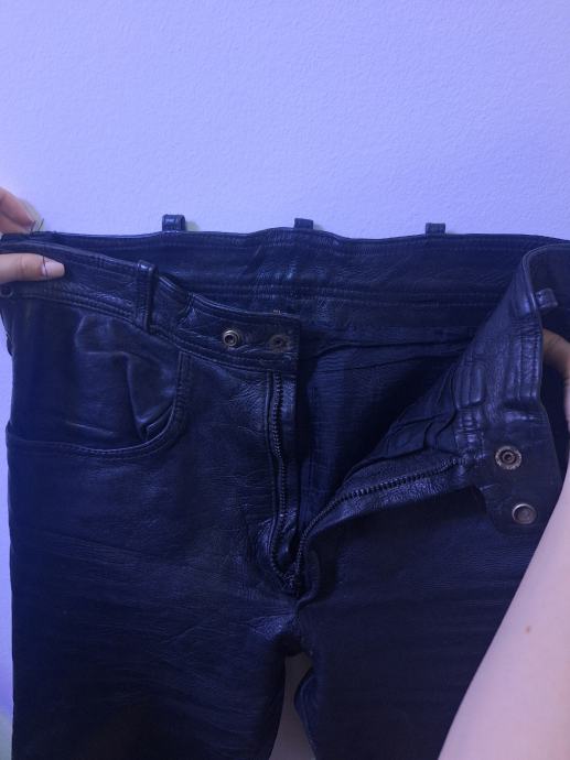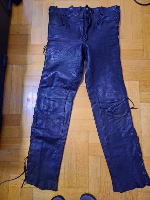 Prave kožne bajkerske hlače. Veličina XL. Sa bočne strane provezene špagicama.