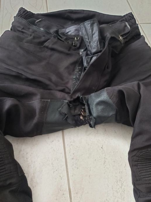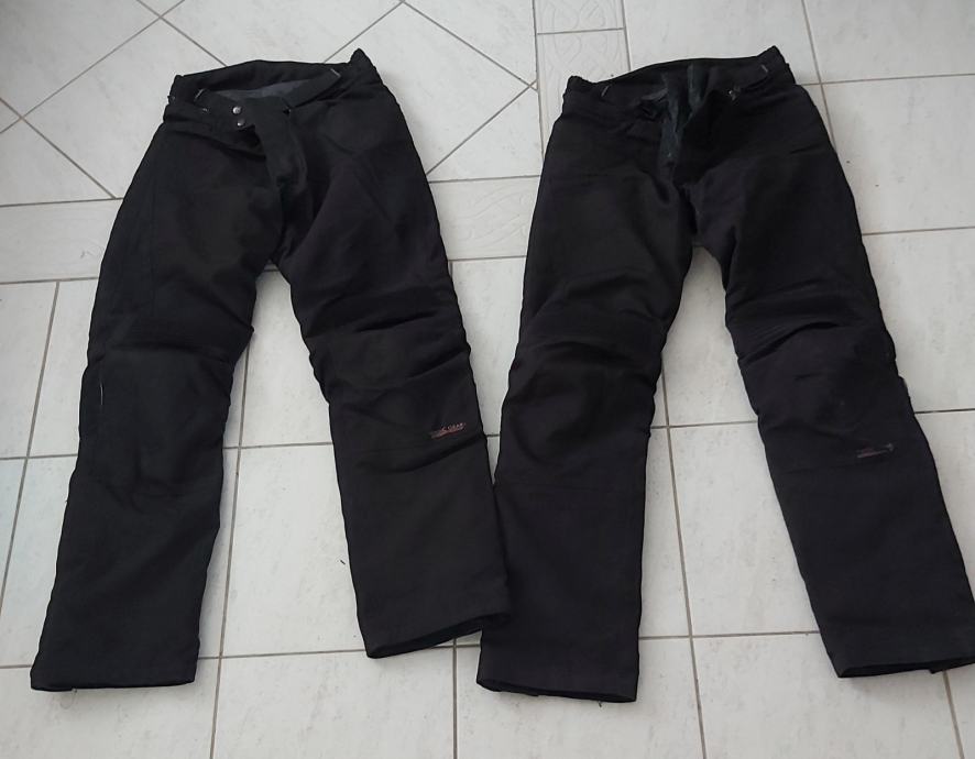 Prodajem dva para rabljenih motorističkih hlaća veličine M i L, u dobrom stanju. Hlaće su vodootporne, otporne na vjetar, ima štitnike na koljenima, prozračne, unutarnju oblogu koja je može skinut i dva vanjska džepa. Kod hlaća ima manjih oštećenja vidiljivo na slikama koje se ne primjetu kad se nose. Ostale informacije zvati na broj 091 958 3290. Može i whatup. Cijena 90e za oba para u kompletu.