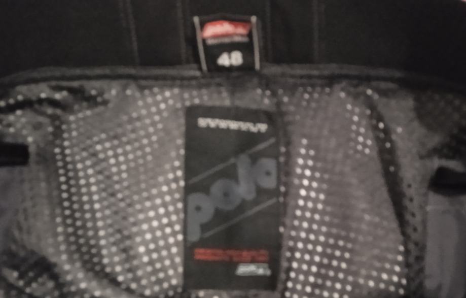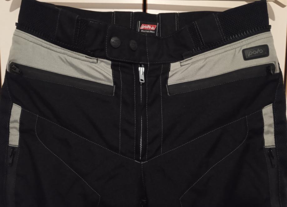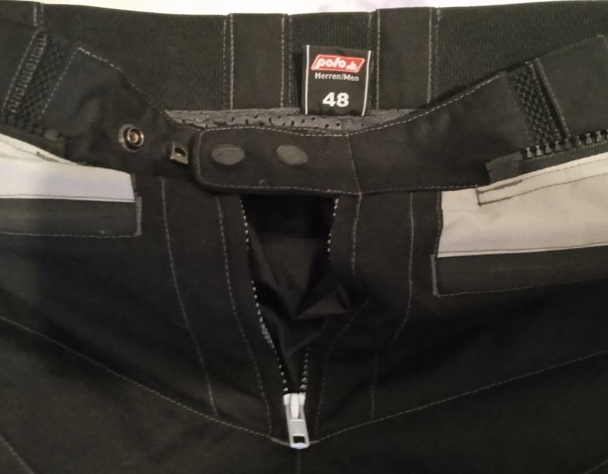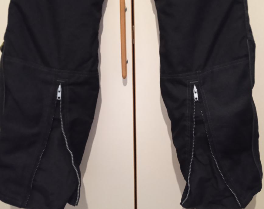 Veličina 48 (struk 41 cm, nogavice 83/109 cm), protektori koljena, džepovi za protektore bokova , tanka podstava,, u odličnom stanju.