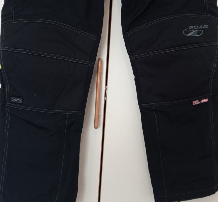 Crne, veličina XL (struk 51-52cm, nogavice 80/108cm), protektori koljena, džepovi za protektore bokova , tanka podstava, cif za zimsku podstavu, u odličnom stanju.