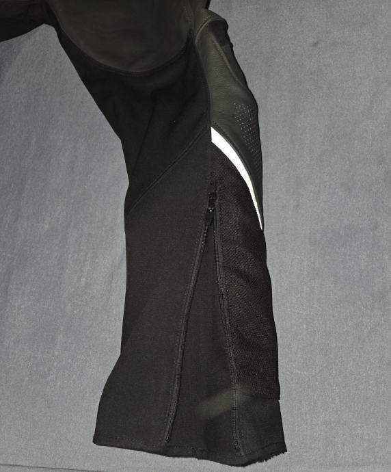 Strateški su postavljeni kožni dijelovi gdje je rizik od klizanja ili vruć u dijelova motora. Imaju 2 patentna zatvarača za spajanje s hlačama (kratki na leđima i dugi oko struka), trake za podešavanje širine, džep na bedru (da ne smeta ništa kada sjednete).
