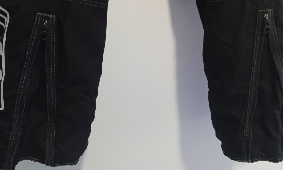 Veličina 36(struk 38-39 cm, nogavice 77/103 cm), CORDURA, protektori na bokovima i koljenima (na skidanje), tanka podstava (cif za zimsku), tregeri (na skidanje), cif za jaknu, u odličnom stanju.