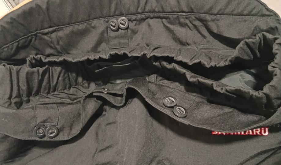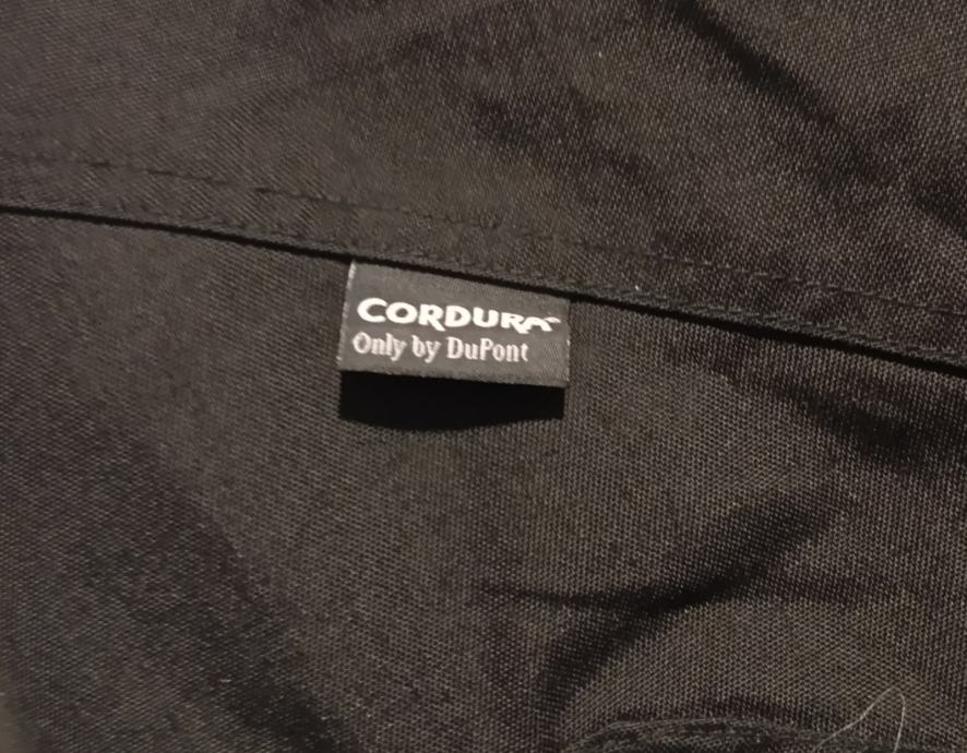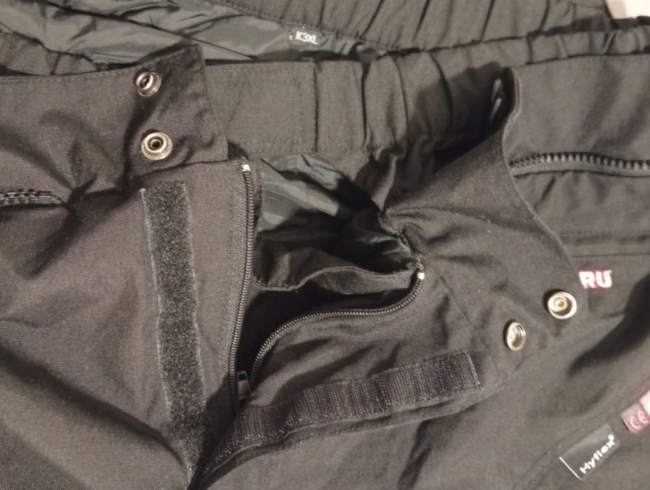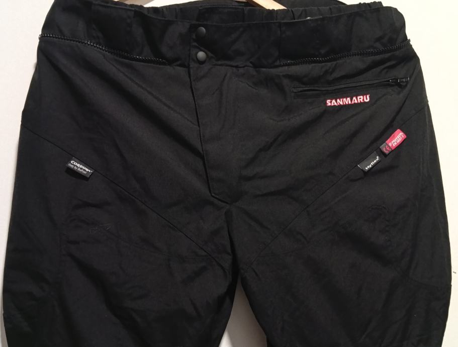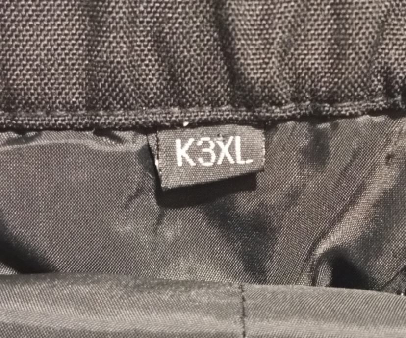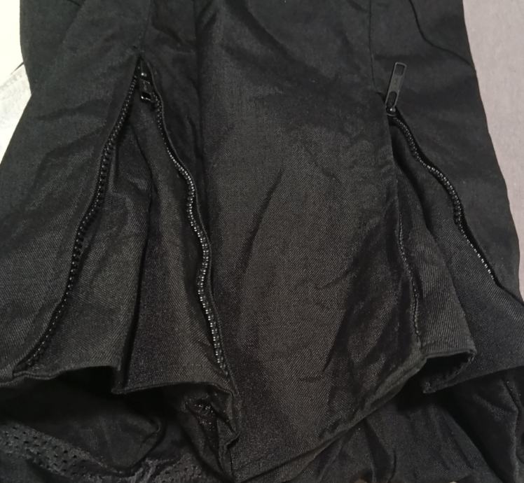 Crne, veličina 3XL(struk 53-59 cm, nogavice 83/111 cm), CORDURA, protektori na bokovima i koljenima (na skidanje), podstava, cif za zimsku podstavu, cif za jaknu, prihvat za tregere, u odličnom stanju.