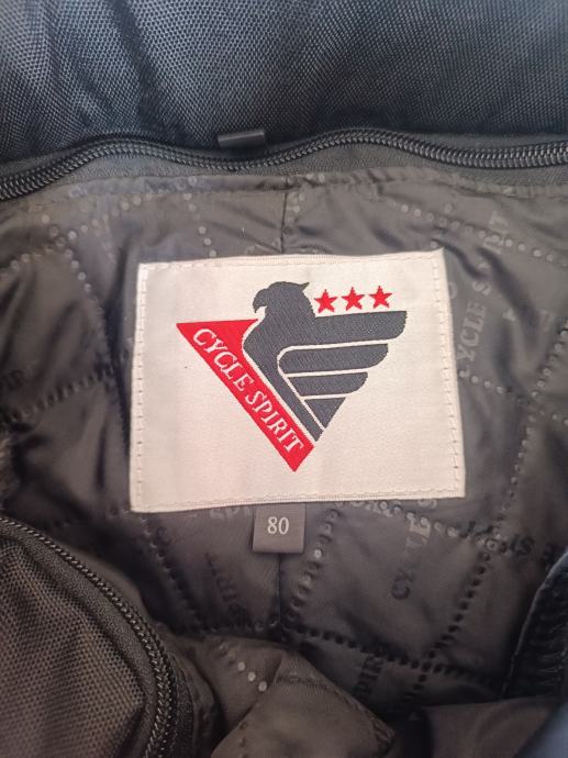 Ženske motorističke hlače, veličina 80, produženi broj 40. Hlače imaju termo podstavu koja se može skinuti, pa mogu biti i za zimu i za ljeto. Nošene jednom.