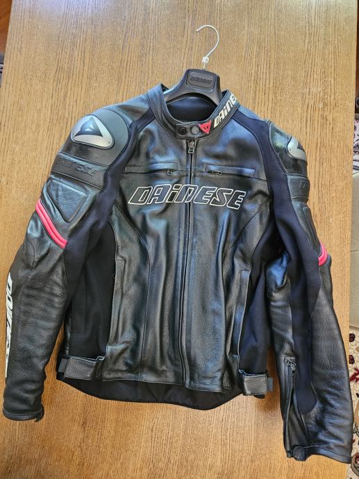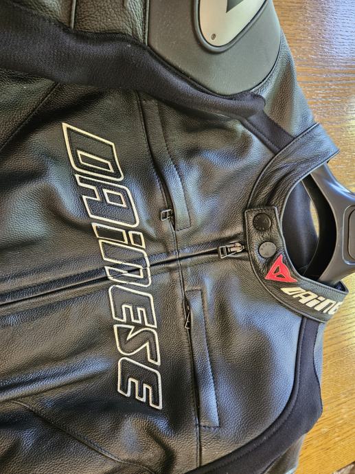 Prodajem moto jaknu iz naslova (Dainese Racing), veličina 54. Korištena max 5 puta, bez padanja, ogrebotina i sl. (stanje odlično, doslovno kao novo, dodatne fotografije dostupne na zahtjev). Razlog prodaje je nekorištenje. Cijena 300 € (cijena nove jakne u trgovini 550 €).