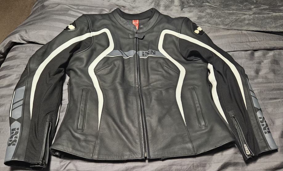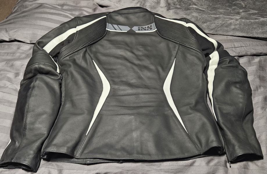 IXS ženska kožna matt crno, sivo, bijela jakna. Leđni veliki protektor, protektori na ramenima i laktovima. Iznutra dodatni prsluk koji se da odvojiti. Veličina 44. Nošena par puta. Kao nova. Kupljena u Šepić Commercu, plaćena 3.060 kuna. U original zaštiti, etiketa. Cijena 300 eura.
