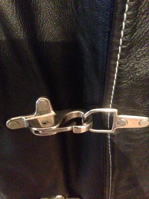 Ili čak XXXL , odnosno 56-58-60 otprilike,sa kopčanjem patent zatvaračem i dodatnim kopčama/karikama.