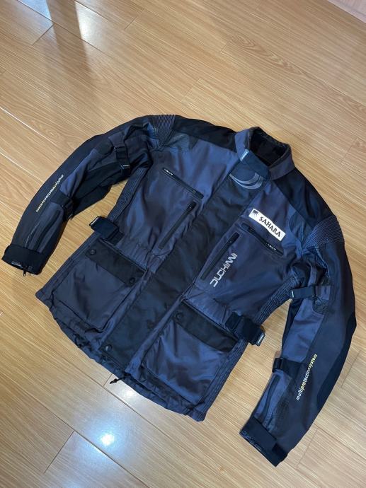 Ima protektore na ramenima i laktovima, kožne dodatke, pojačanje na leđima.