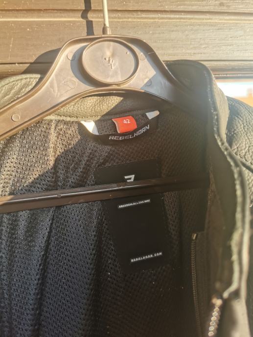 Jakna za motocikl motor, Rebelhorn kožna, 42 L-XL, 2 puta nošena nova, ima skidajuću duplu postavu za vjetar i hladno vrijeme, zaštitu za leđa koja se vadi, 200 e