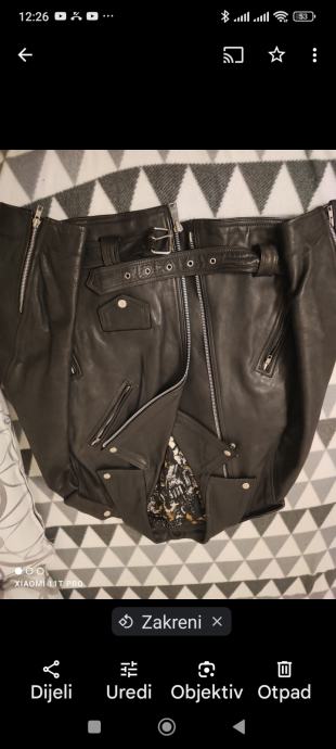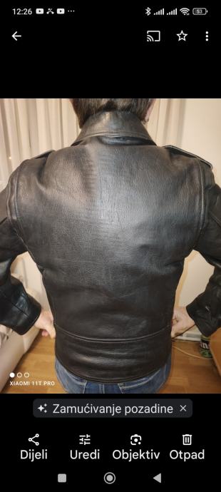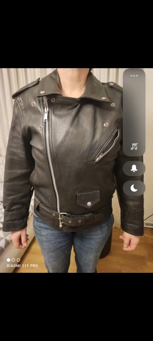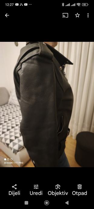 Motoristička jakna rokerica, prava koža veličina S ali više odgovara za M, stanje kao novo, nošena par puta. Moguća zamjena za moto prsluk XL veličine.