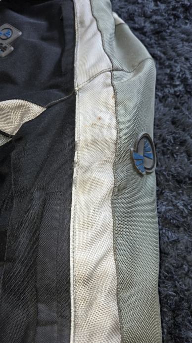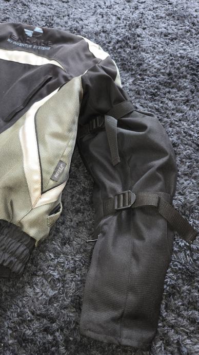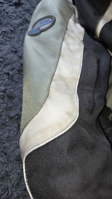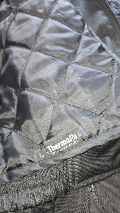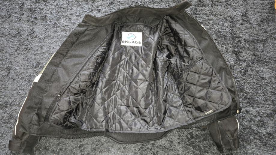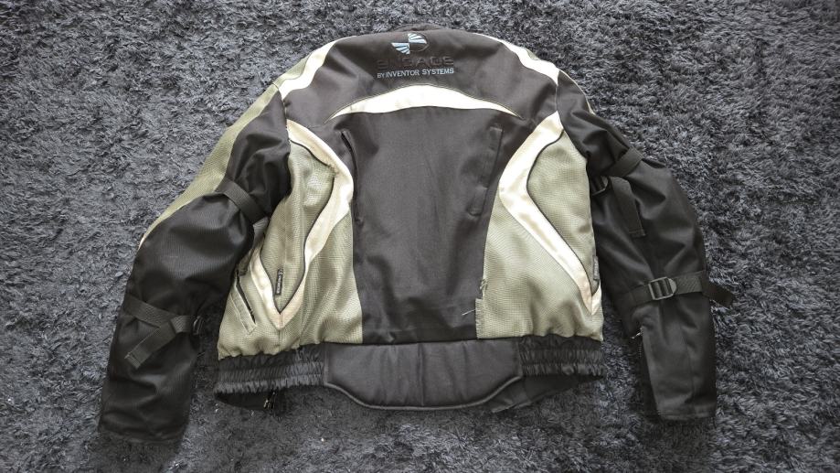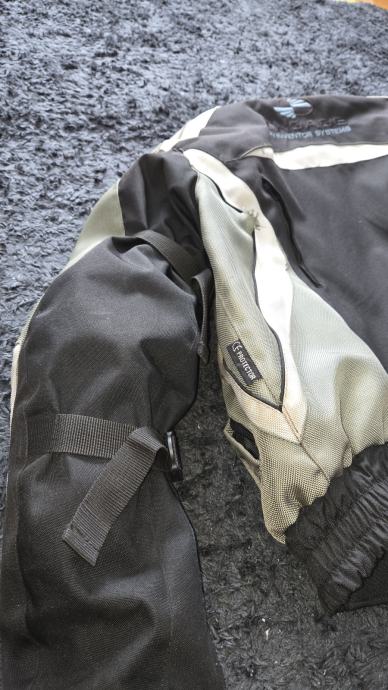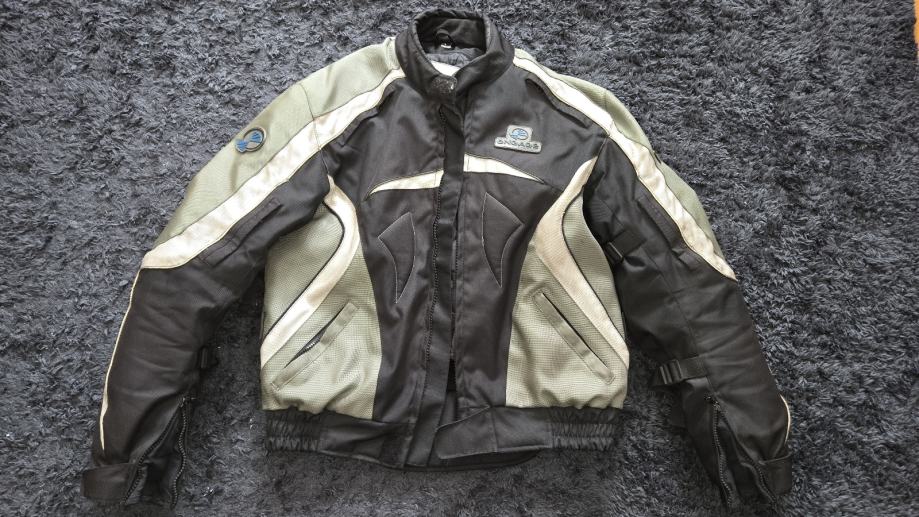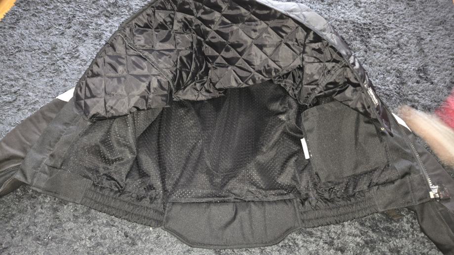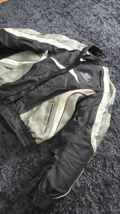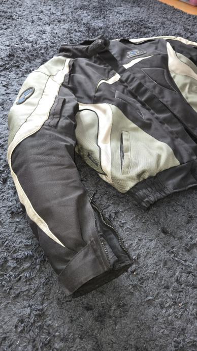 Prodajem tekstilnu moto jaknu sa odvojivom termalnom postavom (full postava sa rukavima) i stitnicima na ramenima i laktovima. Jakna ima ventilaciju u obliku patenta na rukavima, prsima i leđima za bolji protok zraka kad je vruce. Na rukavima i na dnu jakne ima trake za prilagodbu širine.