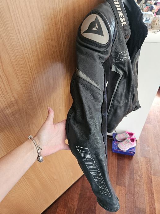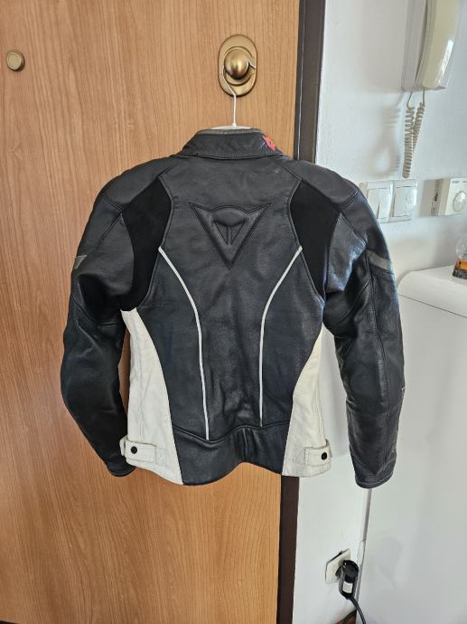 Zenska kozna moto jakna sa integriranim certificiranim stitnicima po EN 1621.1 na ramenima, laktovima, podlakticama.