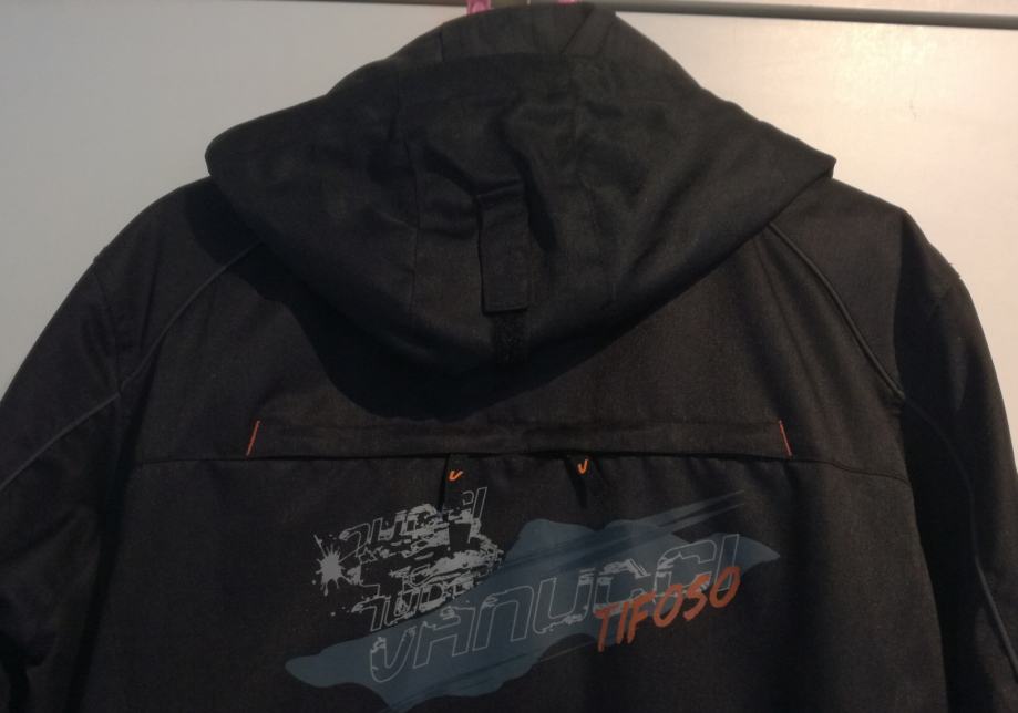 Tifoso, crna, veličina 54 (dosta komotna), protektori (laktovi, ramena), džep za protektor leđa, otvori za ventilaciju, kapuljača (na skidanje), cif za podstavu, u odličnom stanju.