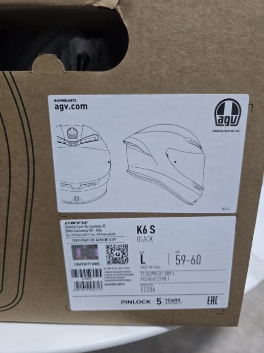 prodajem kacigu AGV K6 S , velicina L , glossy crne boje