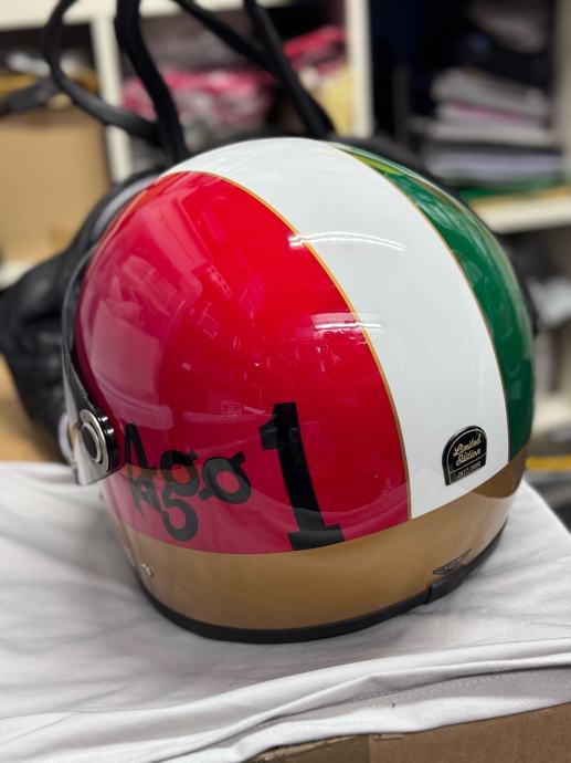 Veličina L (large) Kaciga je zapakirana u originalnom pakiranju, u kompletu dolazi retro kožna AGV torba za nošenje/čuvanje kacige i dajem extra kupljen original AGV crni vizir koji je montran na kacigu!