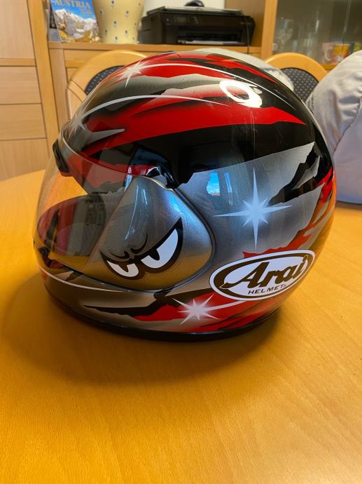 Prodajem arai nr-5 kacigu, stanje super ima na sebi dvije točkice, veličina S (vidi se na slici), cijena 450 eura nije fiksno