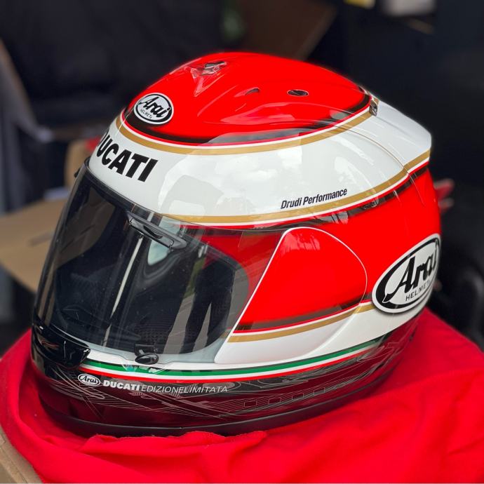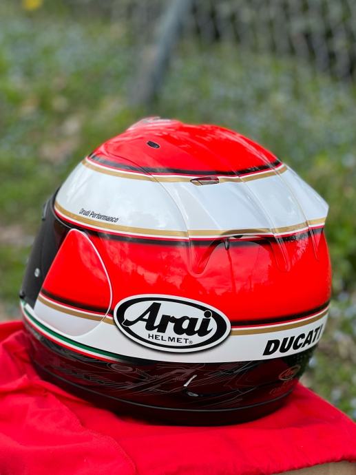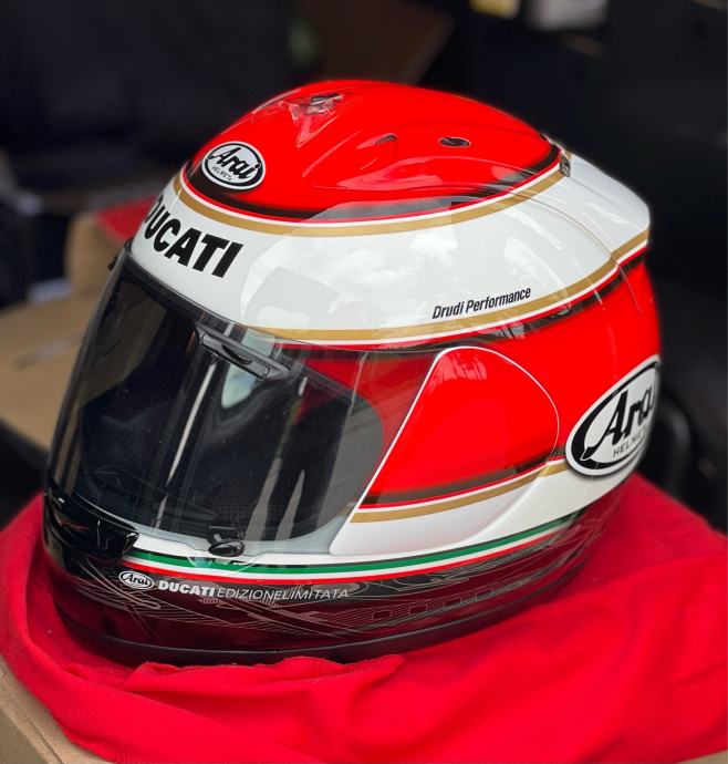 Prodajem potpuno novu NE nošenu legendarnu, rijwtku i kolekcionarsku kacigu Arai RX7 Ducati Corse Edizione Limitata, ograničena serija, vec dugo je nedostupna za kupnju (osim rabljwnih, a i one su rijetke) veličina L (large)