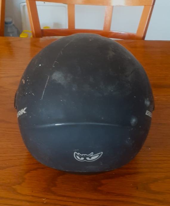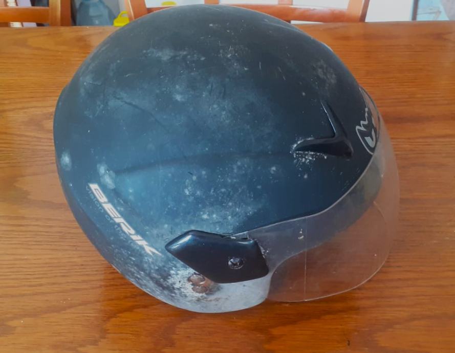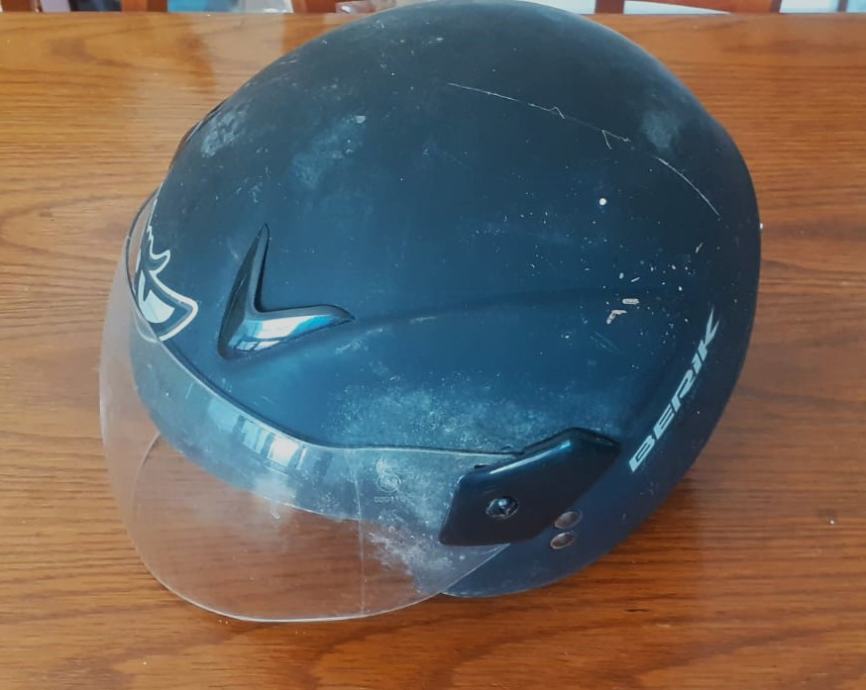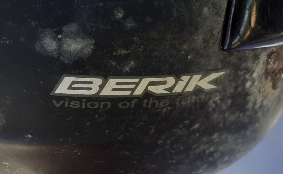 Jet moto kaciga marke BERIK kratko korištena ali sa oštečenjima boje i ruzinava na zakovicama držača vizira sa desne strane.