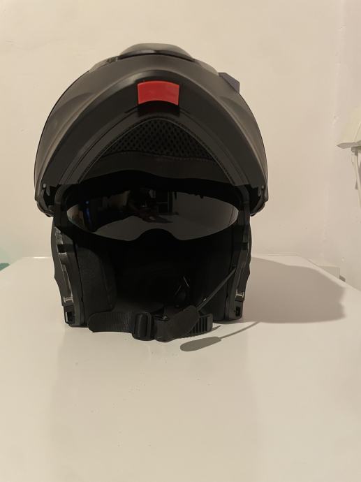 Bogotto H153 BT flip/up kaciga s bluetooth integriranim interkomom, mat crna kao nova, nošena dva puta. Uz kacigu ide i dodatni crni vizir zajedno s original prozirnim. Veličina S (55/56 cm)