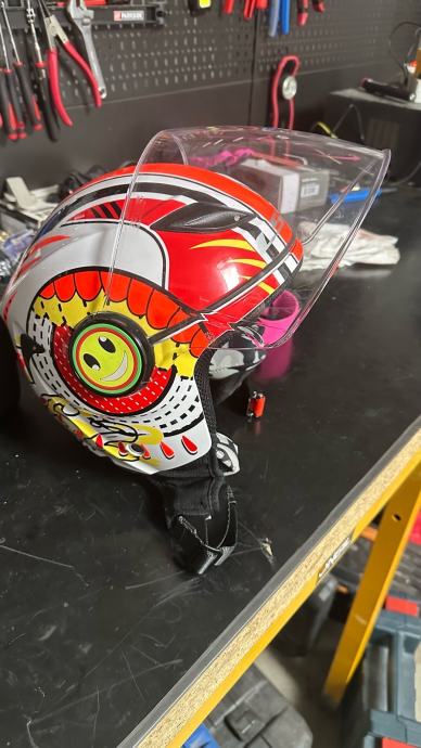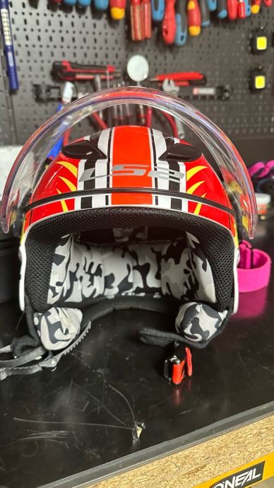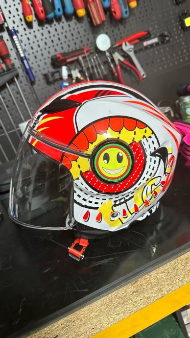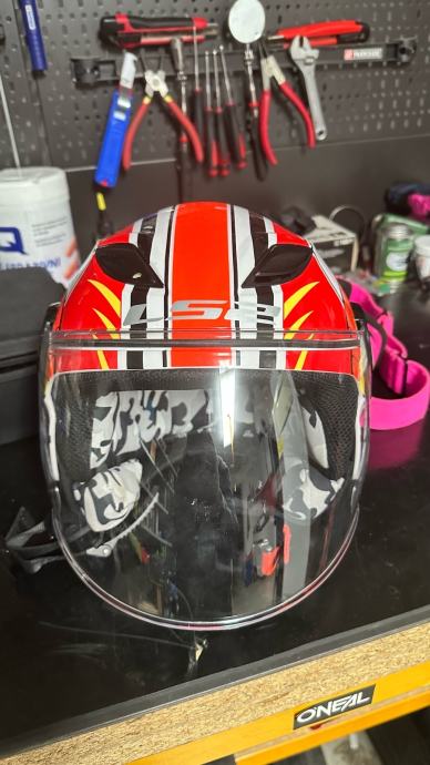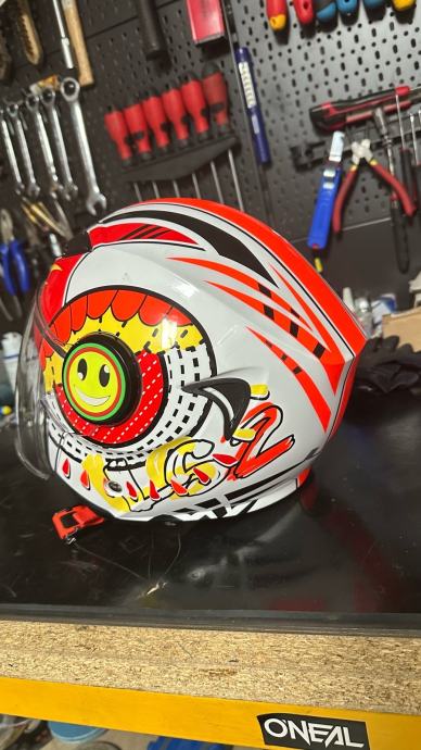 Prodaje se djecja kaciga S velicina promjer 47-48cm ali ide do 50cm bez problema. Ko nova niti jedne crtice na njoj. Vizir.