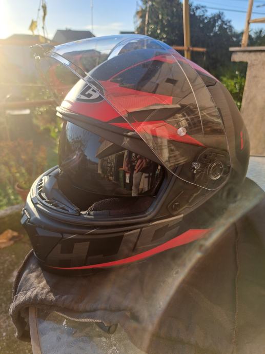 Integralnu kacigu HJC I 70 veličina L 60 cm opseg glave, stara godinu dana . Boja osnovna crna mat a crvena žarka šare. Korištena jednu sezonu ( zimsku, odlazak na posao s posla 3 mjeseca )