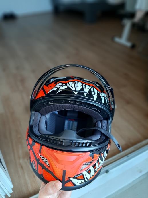 Kaciga je u dosta dobrom stanju, nošena pažljivo i očuvana. Nema ozbiljnih oštećenja, spremna za vožnju bez dodatnih ulaganja