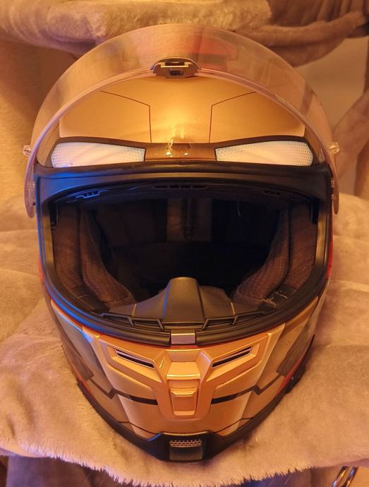 Veličina XL, moj opseg glave je 59cm, meni odgovara i L veličina. Bez ogrebotine , usčuvana, rijedak model Iron Man od Marvela, ima zaštitu od magljenja, originalna kutija i platnena vrećica za čuvanje u kompletu.