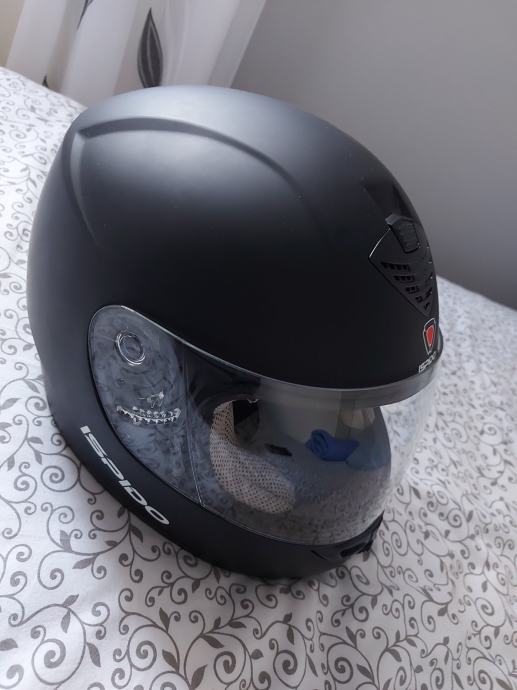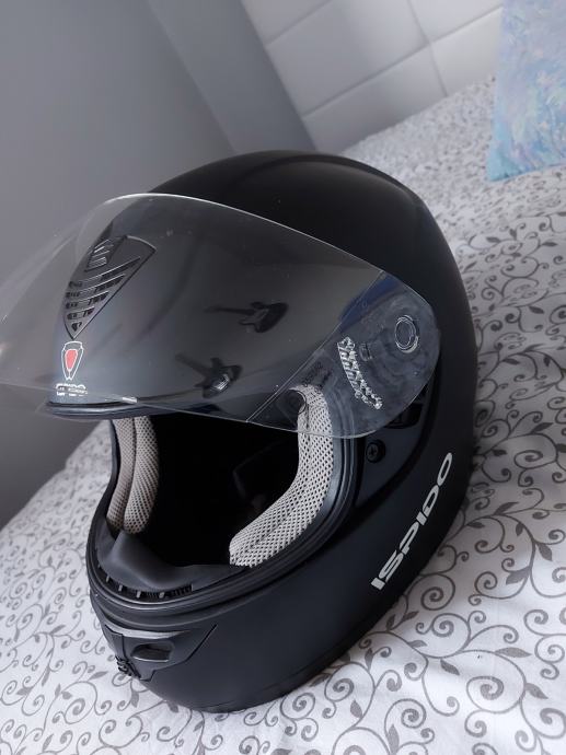 Kaciga je korištena za vožnju skuterom te ima tragove korištenja (većinom od kamenčića). Uz kacigu dajem i zaštitnu vreću za kacigu.