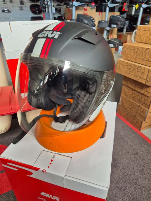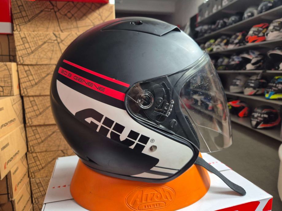 GIVI Jet kaciga za vaša svakodnevna putovanja kroz gradski promet, kako biste uvijek bili zaštićeni i udobno opremljeni, jet kaciga Geneva 30.3F pruža vam sve što želite. Opremljena je dugim prozirnim vizirom otpornim na ogrebotine, unutrašnjošću koja se može skinuti i prati, a izrađena je od materijala otpornog na alergije. Gornji otvori za zrak osiguravaju izvrsnu ventilaciju, dok remen s mikrometrijskim zatvaranjem pruža dodatnu sigurnost.
