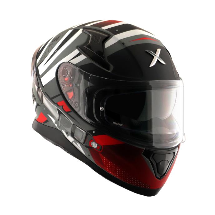 Kako bi se zaštitio motociklist, dvostruka EPS podstava kacige je dizajnirana da savršeno pristaje na glavu kako bi upijale energije udarca i izbjegla penetracija. Remen za bradu pričvršćuje kacigu i glavu unutra kako bi se spriječilo rotiranje ili ispadanje kacige